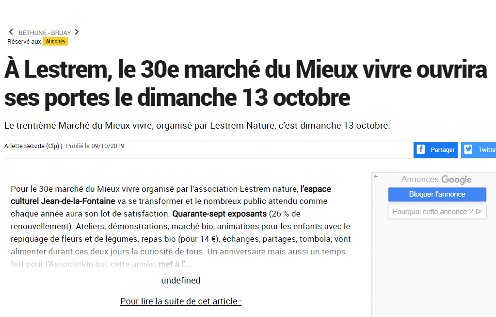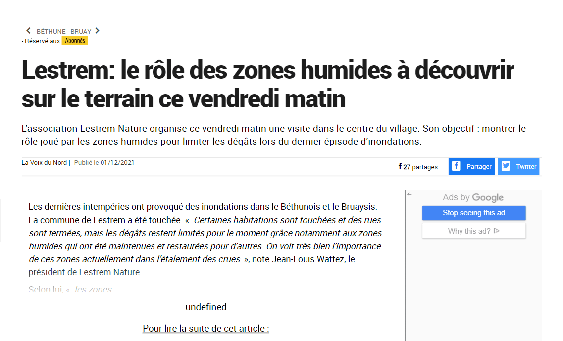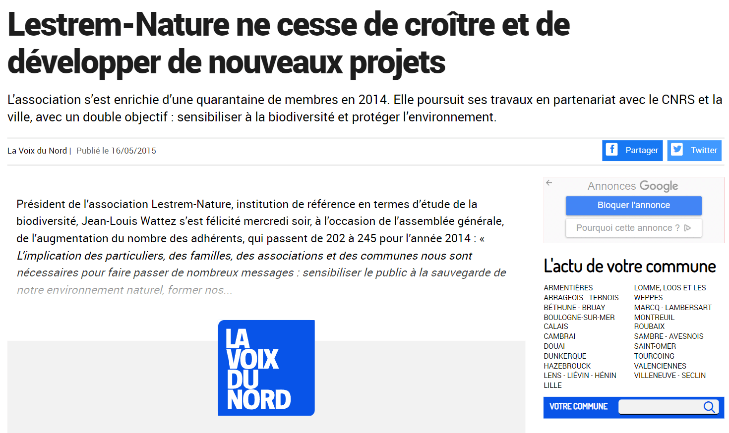 Quelques articles de presse relatant les activités de Lestrem Nature