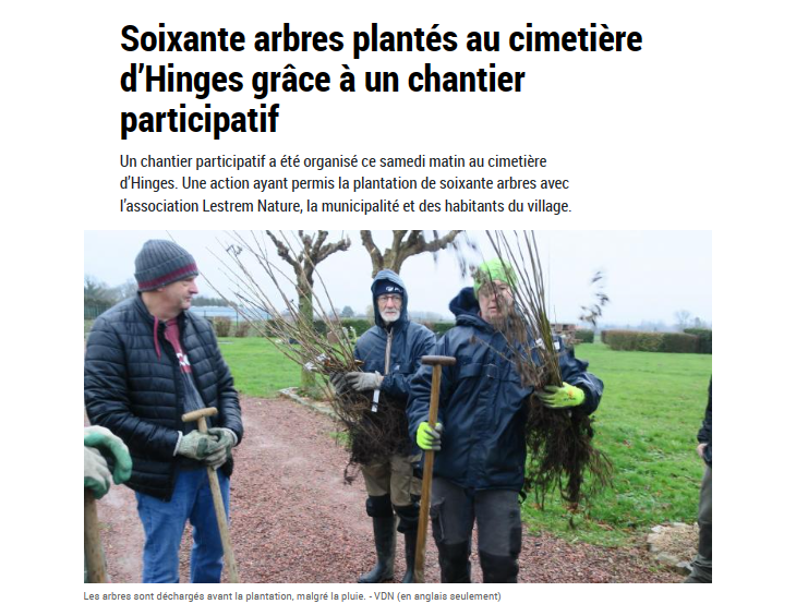 Soixante arbres plantés au cimetière d'Hinges grâce à un chantier participatif
